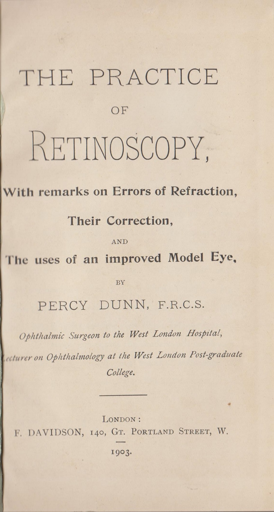 The practice of retinoscopy with remarks on errors of refraction, their correction and the uses of an improved model eye