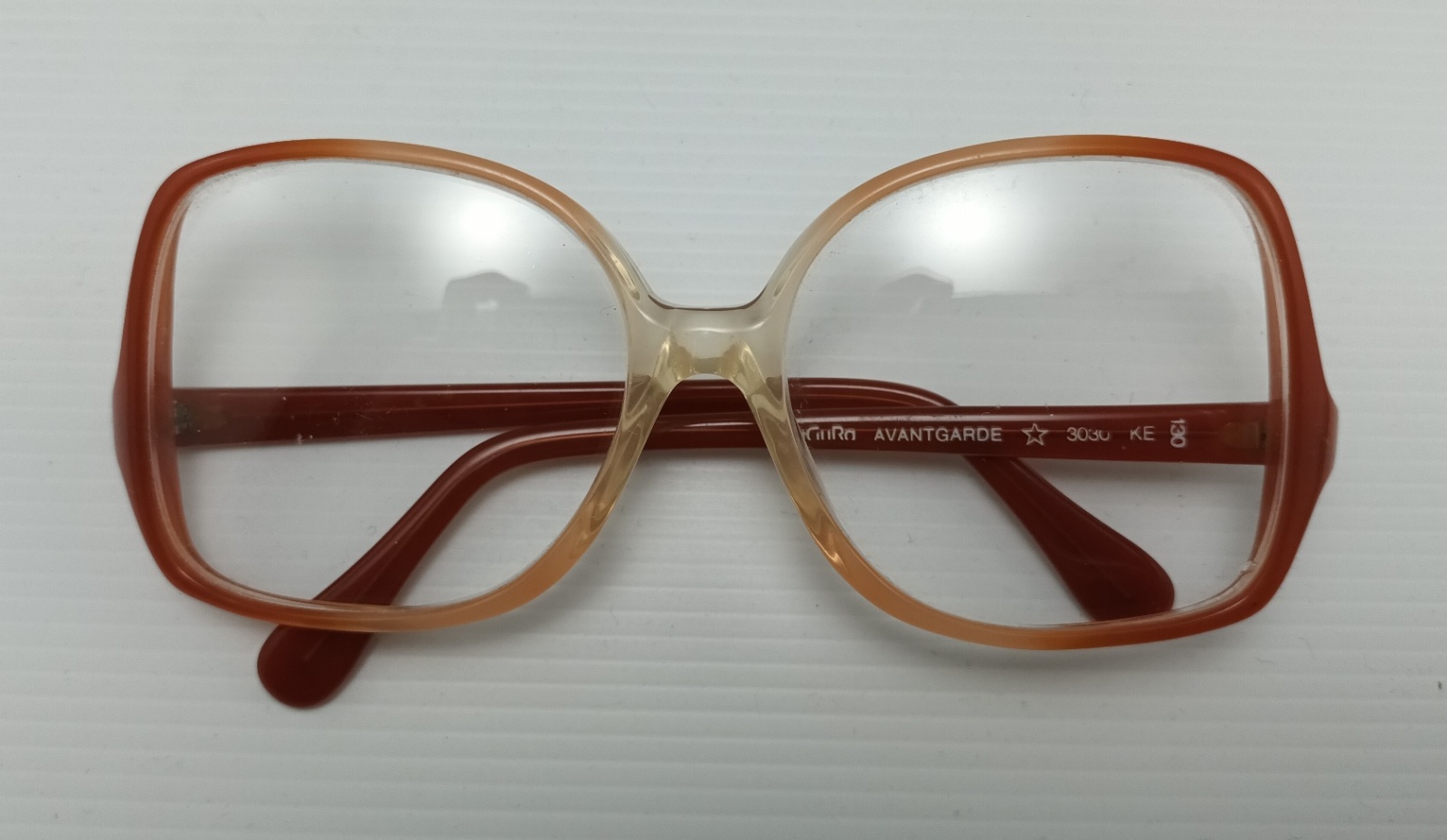 | Catalogue Number: 4578 NiGuRa ladies shell spectacles with glass lenses Category: Spectacles and lenses Sub-Category: Spectacles (with lenses) Corporation: NiGuRa Time Period: 1940 to 1999 Place Of Publication/Manufacture: Dusseldorf, Germany Publisher/Manufacturer: NiGuRa Description Of Item: Plastic ladies spectacles in apricot fade colour with low set temples and glass single vision lenses. Left temple has white print: 'NiGuRa AVANTEGARDE (star) 3030 KE 130' Bridge labelled '54(box)16'. Lens powers: R: +0.25/-0.50x70 L:+0.25/-0.50x110. Dimensions: 138 x 55mm. Historical Significance: NiGuRa Optik was established in 1866 by Ernst Nitsche and August Gunther in Rathenow, becoming part of Rosenstock in 1981. In 2005 Rodenstock sold the NiGuRa frame subsidiary to Moulin International of Hong Kong. How Acquired: Donated by David Glennie Date Acquired: 14.7.2025 Condition: Very good Location: Documents Room Orange Daytona Cabinet Drawer 2 |
