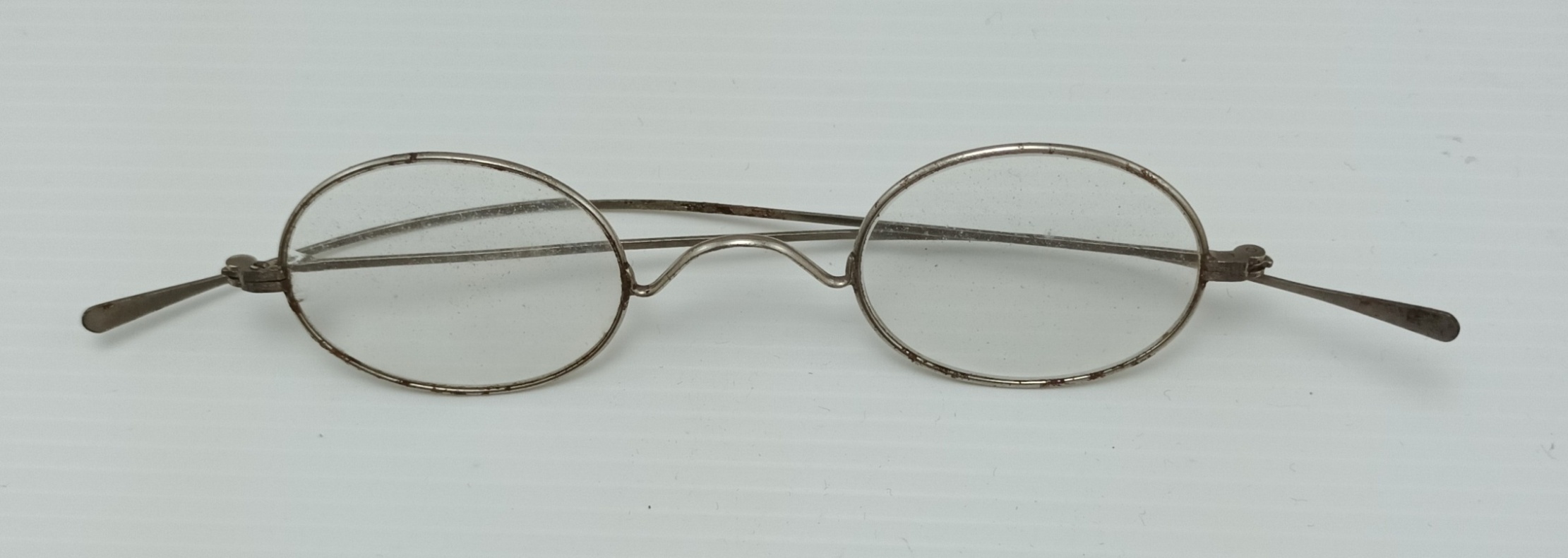 | Catalogue Number: 4571 Silver coloured oval eye spectacles with arched bridge and fine straight temples Category: Spectacles and lenses Sub-Category: Spectacles (with lenses) Year Of Publication/Manufacture: c1920 Time Period: 1900 to 1939 Description Of Item: Silver coloured oval eye spectacles with arched bridge and fine straight temples. Lens powers R:+2.25 DS L: +0.25 DS. Dimensions:152 x 30mm. Historical Significance: From the practice of John Garratt, grandfather of the donor How Acquired: Donated by John Boxshall Date Acquired: 2.06.2025 Condition: Very good Location: Documents Room Orange Daytona Cabinet Drawer 4 |