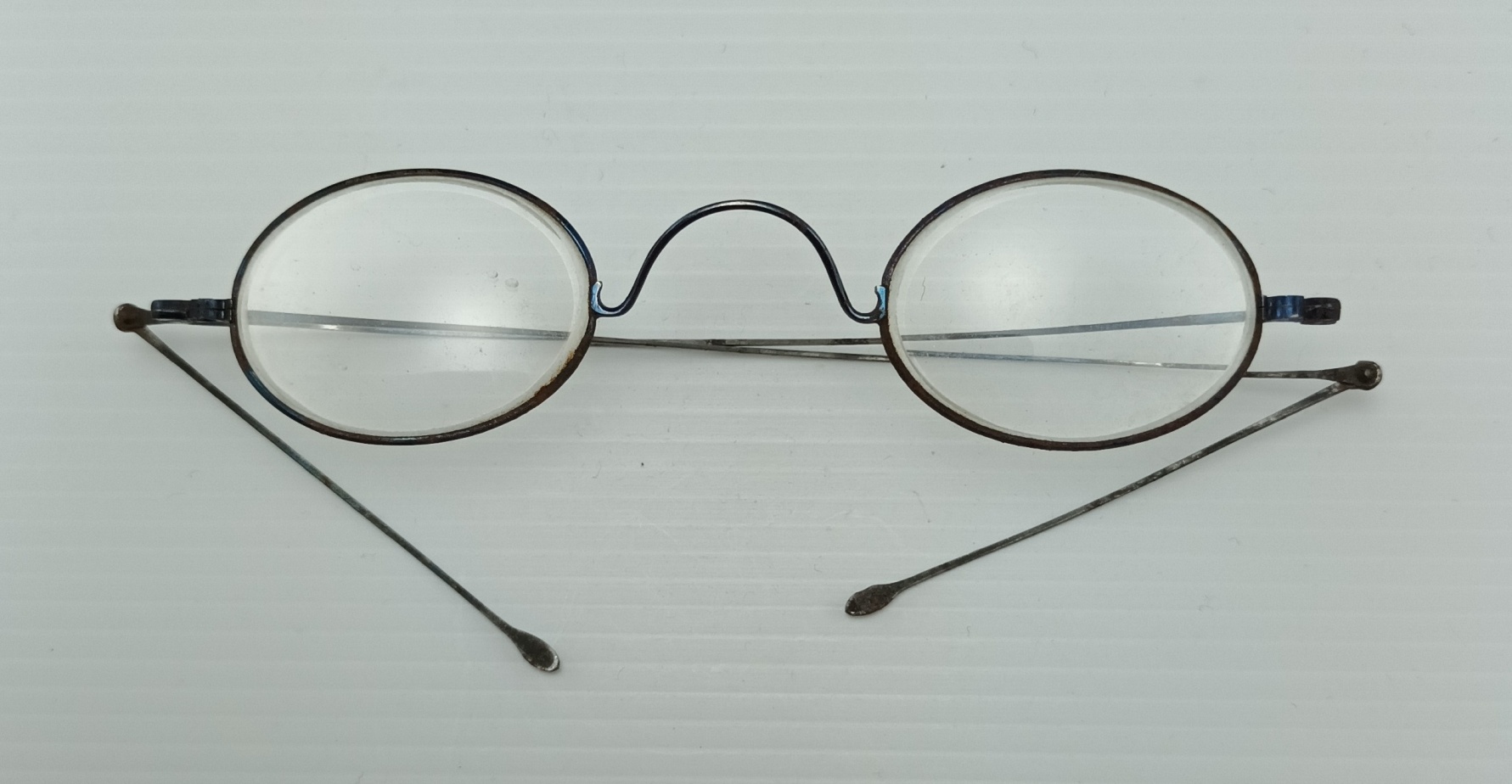 | Catalogue Number: 4569 Fine blued steel spectacles with oval eyes, arch bridge and folding sides Category: Spectacles and lenses Sub-Category: Spectacle frame Year Of Publication/Manufacture: c1910 Time Period: 1900 to 1939 Description Of Item: Fine blued steel spectacles with oval eyes, arched bridge and folding sides. Lens powers -8.25 DS R & L. Dimensions:124 x 25 mm. Historical Significance: From the practice of John Garratt, grandfather of the donor How Acquired: Donated by John Boxshall Date Acquired: 2.06.2025 Condition: Very good Location: Documents Room Orange Daytona Cabinet Drawer 4 |