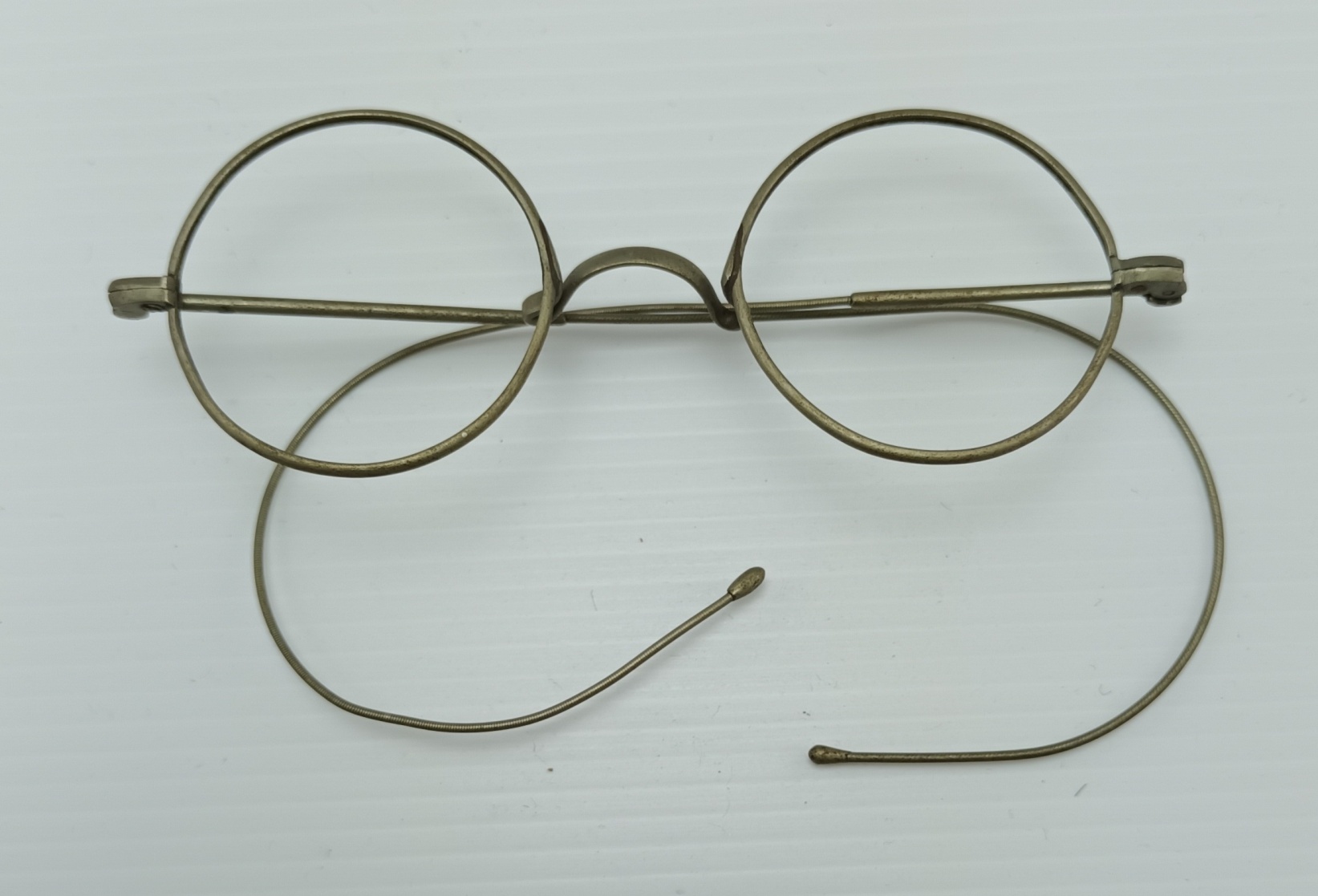 | Catalogue Number: 4560 Round-eye spectacle frame with curl sides and 'W' bridge Category: Spectacles and lenses Sub-Category: Spectacle frame Year Of Publication/Manufacture: c1930 Time Period: 1900 to 1939 Description Of Item: Round-eye spectacles with curl sides and 'W' bridge. Matt grey metal. Dimensions: 97 x 60 mm. Historical Significance: From the practice of John Garratt, grandfather of the donor. How Acquired: Donated by John Boxshall Date Acquired: 2/6/2025 Condition: Very good Location: Documents Room Orange Daytona Cabinet Drawer 4 |
